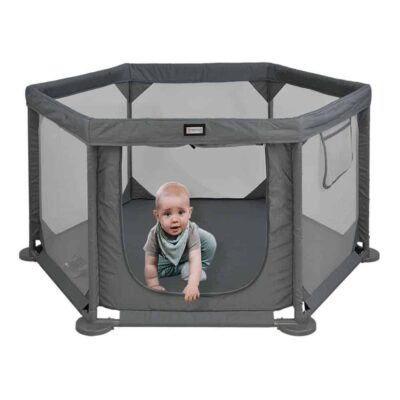 - Όλες οι πλευρές του είναι κατασκευασμένες με δίχτυ για ορατότητα και αερισμό του παιδιού.