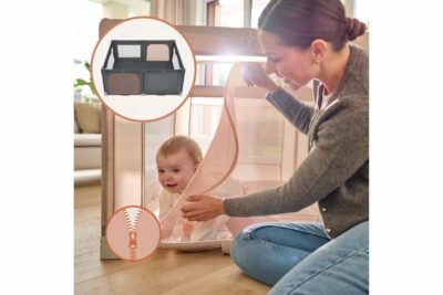 Το μικρό σας μπορεί να μπαίνει και να βγαίνει από το πάρκο χωρίς δυσκολία, χάρη στις δύο πλαϊνές εισόδους που ανοίγουν με φερμουάρ. Τα φερμουάρ κλείνουν εύκολα και με ασφάλεια, δημιουργώντας έναν προστατευμένο χώρο παιχνιδιού και ξεκούρασης για το παιδί σας.